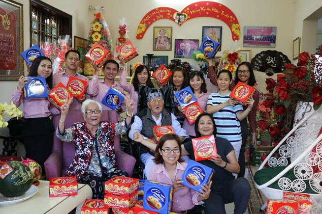 Đại diện tập thể nhân viên đã đến thăm và chúc tết hai cụ Thân Sinh của ông Bùi Thành Nhơn, chủ tịch Tập đoàn Anova tại nhà riêng.