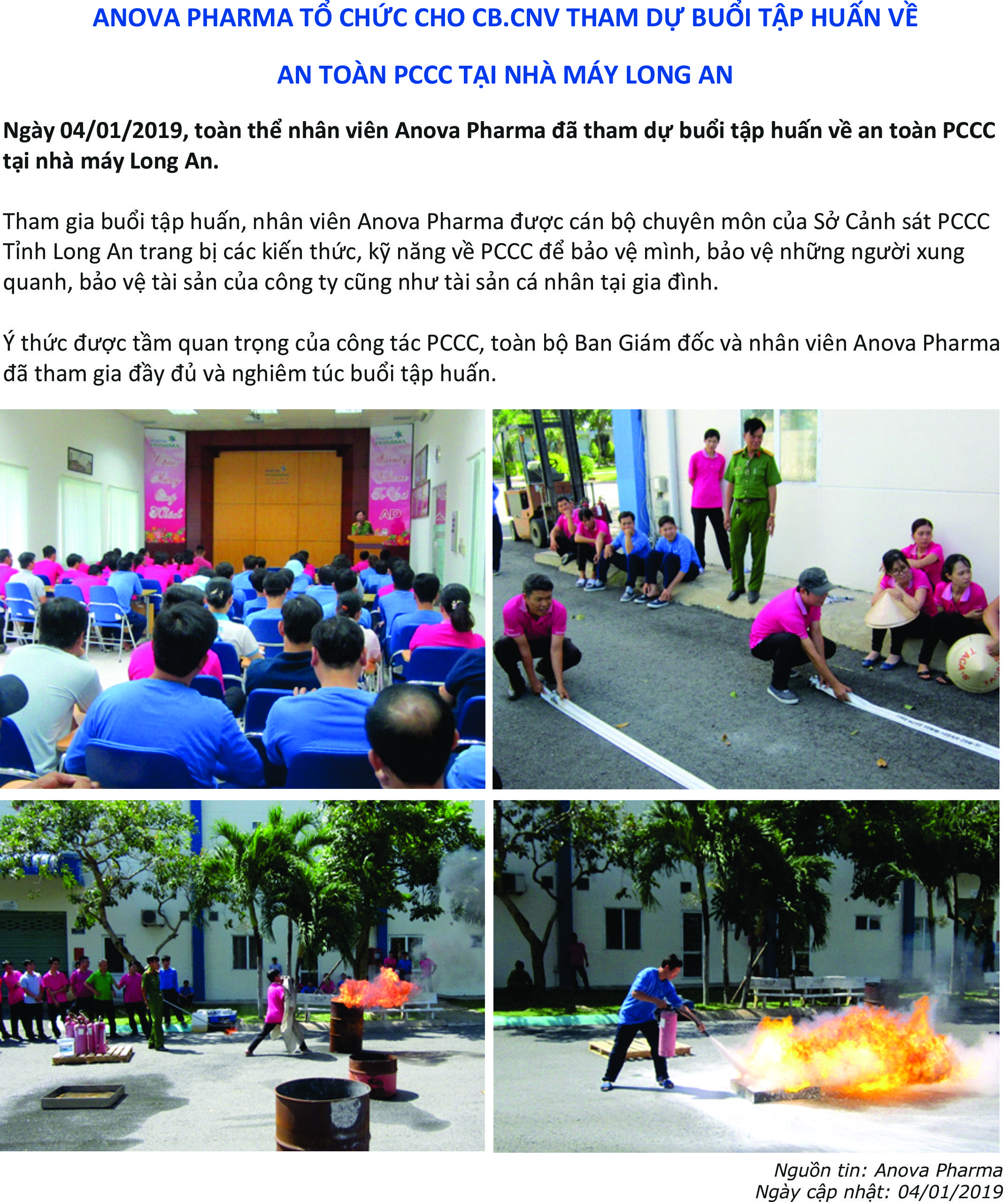 ANOVA PHARMA TỔ CHỨC CHO CB.CNV THAM DỰ BUỔI TẬP HUẤN VỀ AN TOÀN PCCC TẠI NHÀ MÁY LONG AN